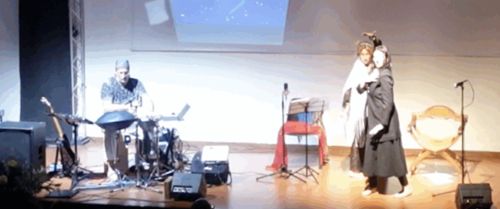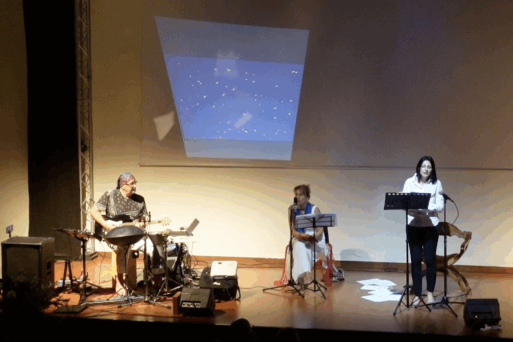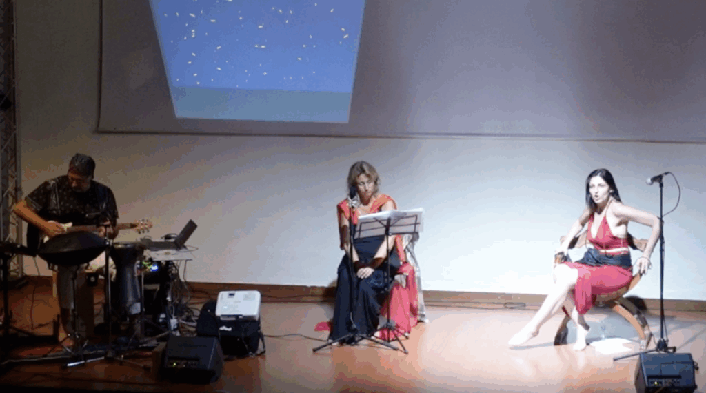 Sul palco un’attriceuna cantante e danzatrice e un polistrumentista alternano parole, suoni, azioni fisiche ed effetti acustici, per ricreare vite e atmosfere in un continuum narrativo che dall’antichità mitica arriva al pragmatismo del tempo presente.