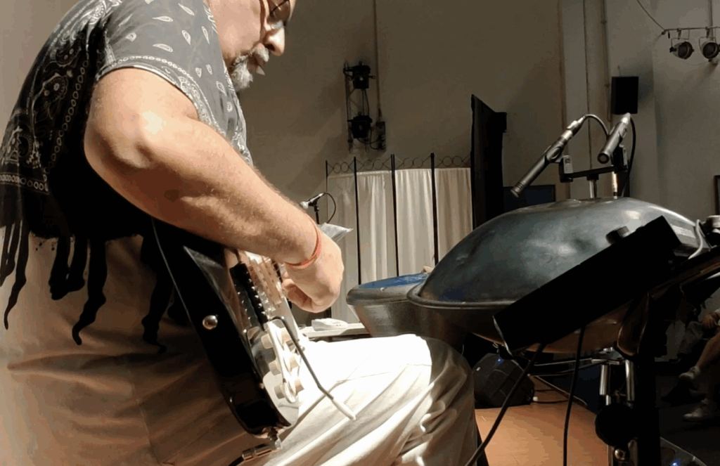 Il set di strumenti sul palco è pensato per esprimere il paesaggio musicale attraverso un linguaggio personale fatto di timbri variegati.